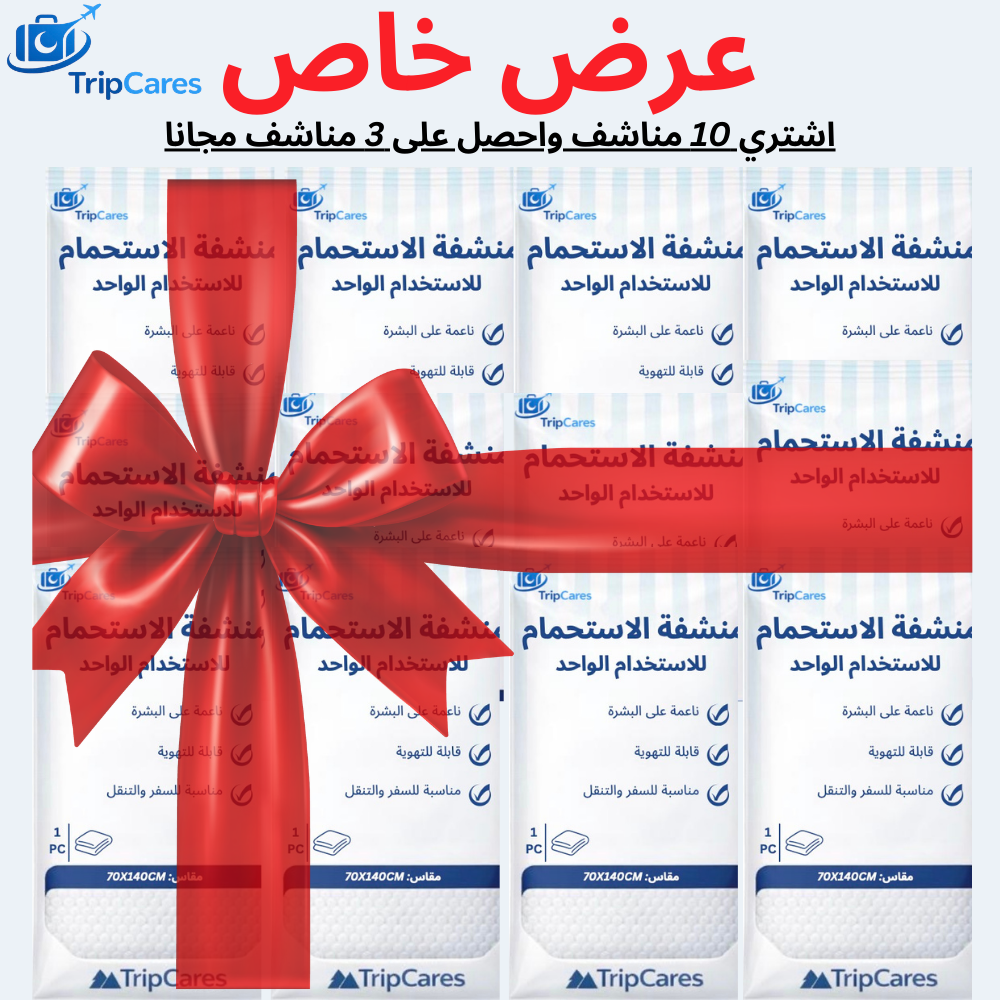 استمتع بتجربة نظافة شخصية آمنة أينما كنت مع مناشف TripCares للاستخدام الواحد المصممة خصيصاً للمسافرين والباحثين عن أعلى مستوى من النظافة أثناء الإقامة في الفنادق أو الشقق المفروشة.